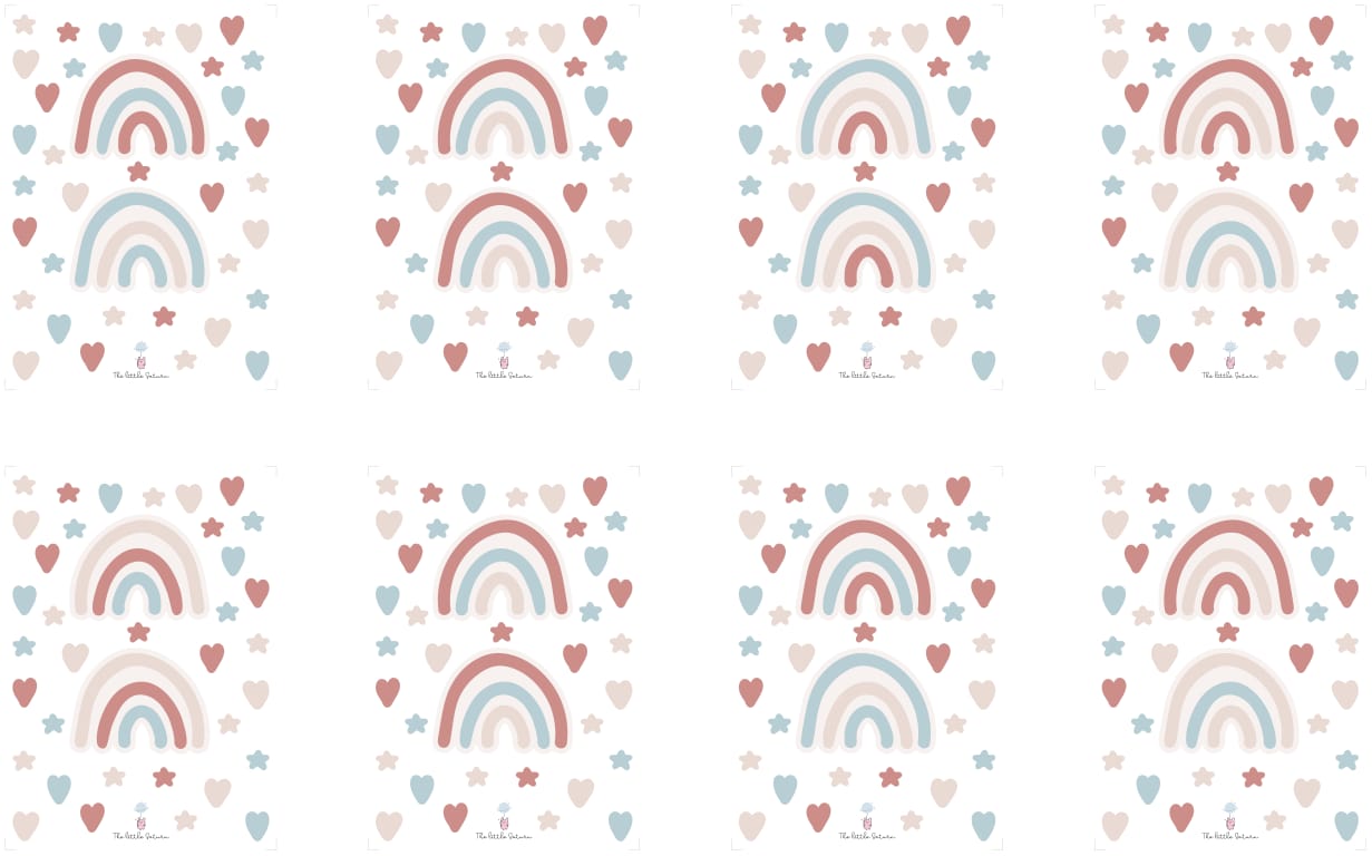 A delightful wall decal featuring charming pastel rainbows paired with delicate hearts, bringing a touch of whimsy and warmth to any room. Perfect for brightening nurseries, playrooms, or cozy spaces.